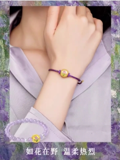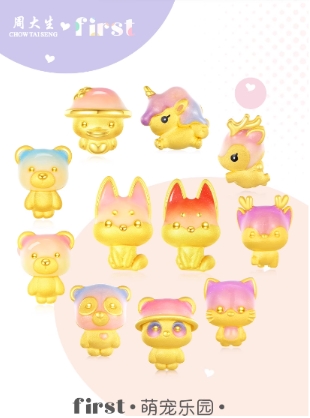 first果冻珐琅转运珠以其“晶莹透亮”宛如果冻质感的渐变色彩和乖巧治愈的产品形象,一举刷新大众对传统黄金的刻板认知。其中为代表的是“浪漫童话”系列小王子与小公主、“萌宠乐园”系列的小狐狸、“跨界联名”系列的《和平精英》IP联名、“文化祝福”系列的生肖龙等等,每个系列都有其独特的故事背景,并以【随心串】的功能概念,将其串联起来。既满足消费者创意DIY搭配需求,也为消费者打开了表达个性的情绪入口。