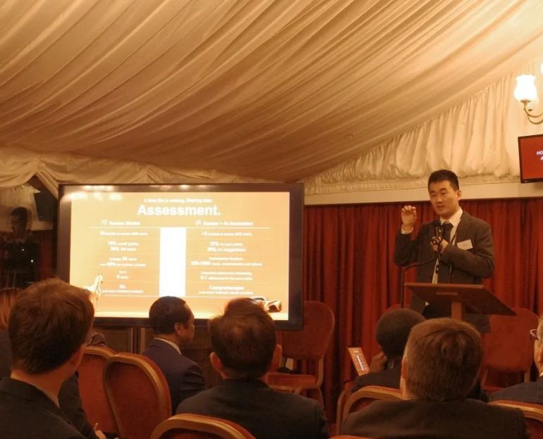 知路研修科技集团董事长兼KEATH 首席执行官付霖先生( Joey Lin) 在现场为嘉宾演示了KEATH.ai如何对学生的作业和评估进行快速评分和反馈,通过智能化的方式提高学生学习成绩。