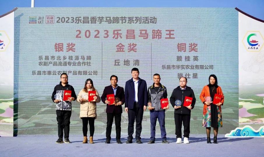乐昌市政协主席陈继平为2023年乐昌“马蹄王”金银铜奖获奖代表进行了颁奖