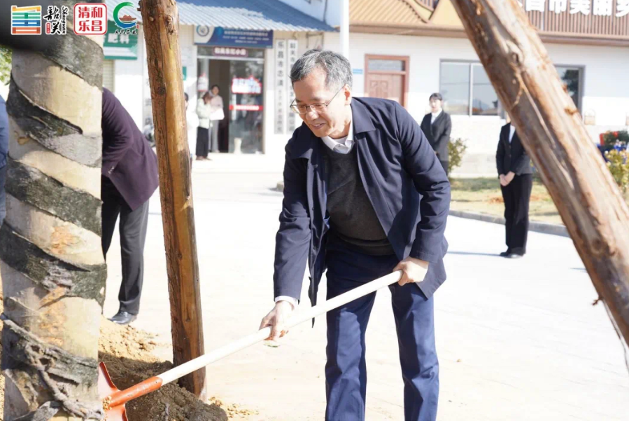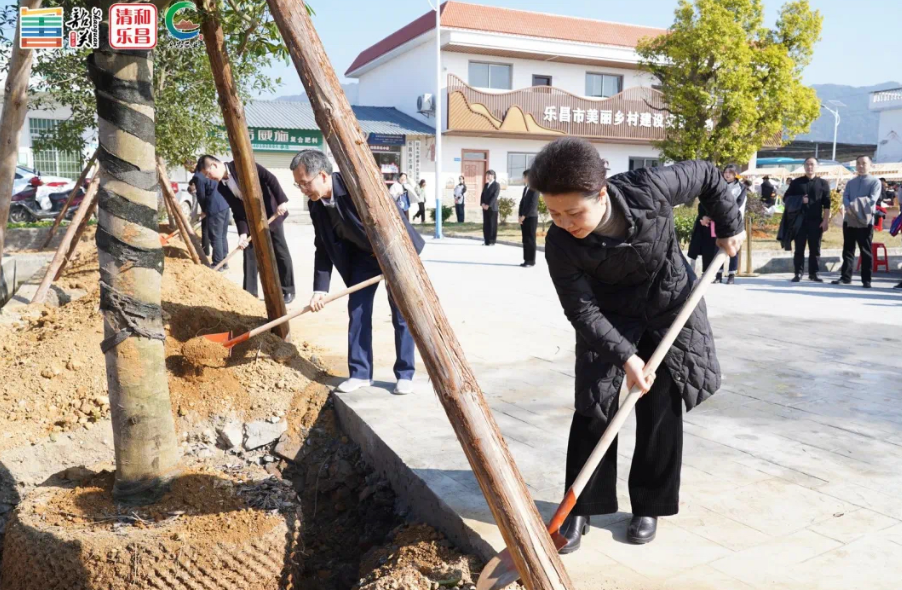 由各位领导亲自种植的这四棵树分别是乐昌含笑和桂花,寓意着乐昌东红村将以一年“四”季的美好,“笑”迎八方“桂”(贵)宾的莅临。