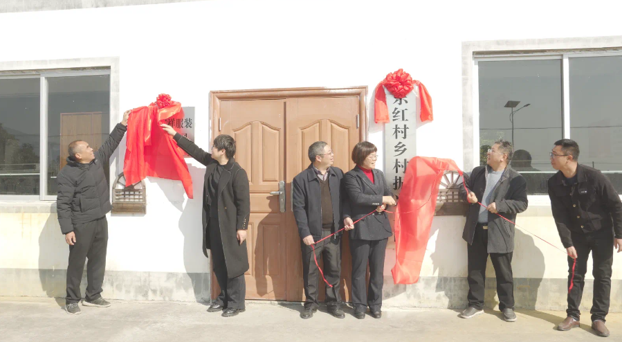 植绿结束后,市领导移步到吉祥锣鼓前敲响鼓劲和美好愿景的铜锣。随后,还在活动现场举行了制衣乡村振兴车间揭牌仪式。