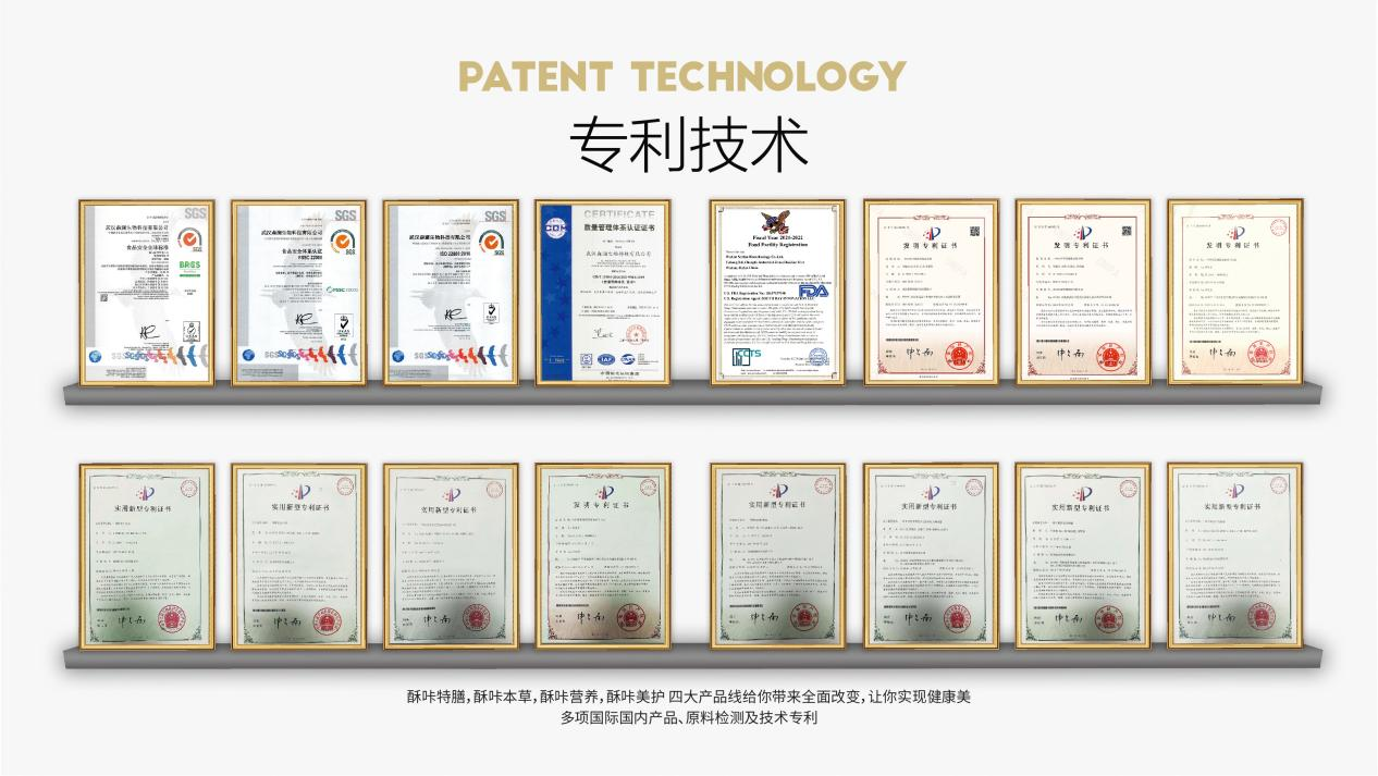 SUKA酥咔品牌以“不极致 不出品”的产品研发理念,研发了酥咔特膳、酥咔本草、酥咔营养和酥咔美护四大产品线,目前品牌已通过了多项国际国内产品、原料检测及技术专利。
