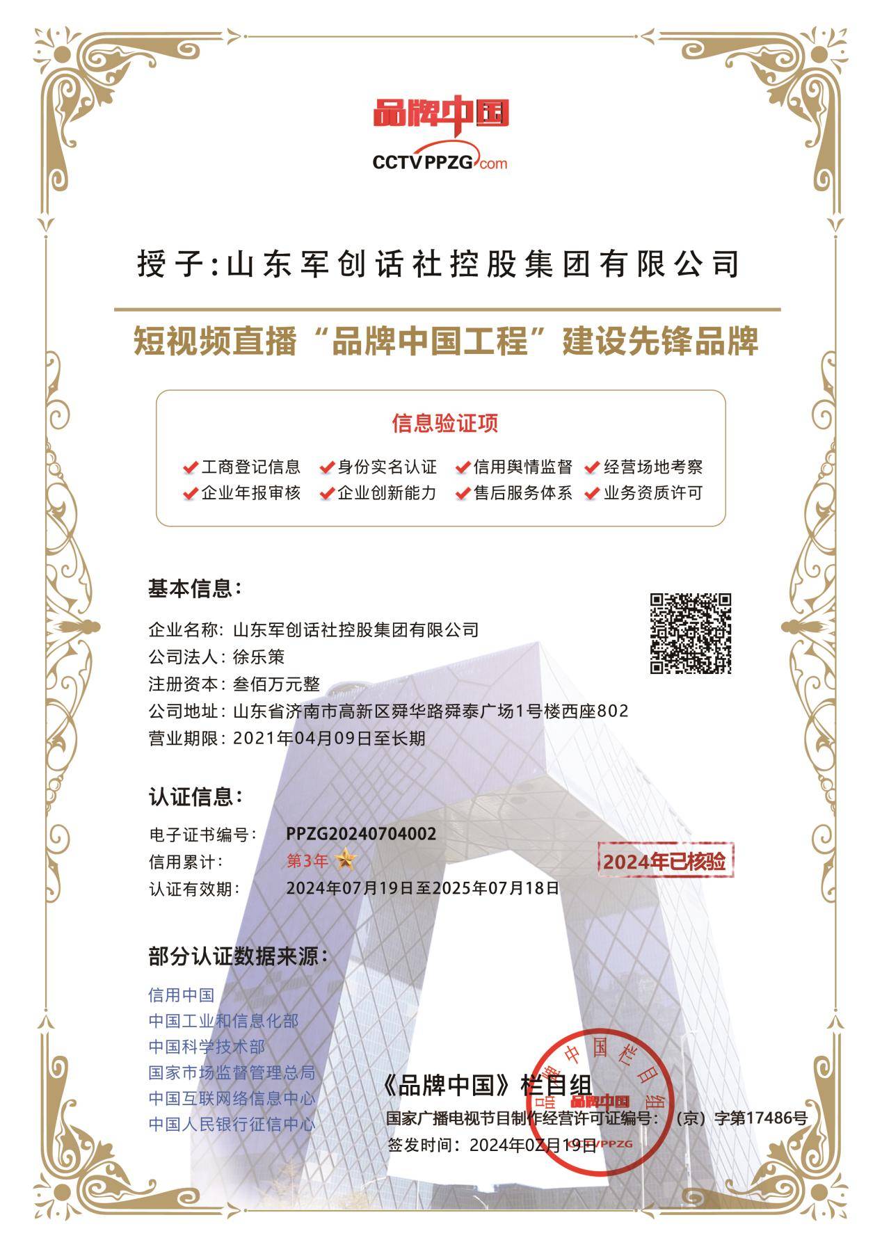 近日,军创话社集团已经连续三年被《品牌中国》栏目选为推荐的企业品牌,作为国内网络直播领域的佼佼者,我们将联合《品牌中国》节目一起推动国内互联网直播电商产业发展,增强内容自媒体及电商核心竞争力,实现我国电商发展提质增效。