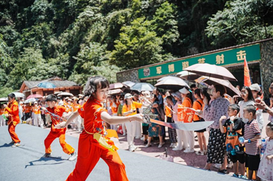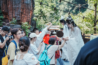 7月20日,“归山入海•奇幻丹霞”《山海经》国风巡游活动在赤水丹霞旅游区•大瀑布景区正式回归。本次巡游活动在五一《山海经》系列巡游活动的基础上,升级打造了“应龙”、“烛龙”、“计蒙”三个龙少年的形象,并原创“炽麟”、“瀑澜”、“松听”三个国风少女角色于景区进行环线巡游,游客表示此次国风巡游活动让上古神兽从丹霞山水间走出来,使《山海经》“活”了起来。