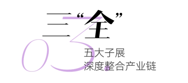 全:通过全产业链的深度整合,五大子展覆盖行业的每一个环节,提供全方位一站式解决方案,全面提升家居行业的创新能力和竞争力,助力行业实现更广泛的发展。