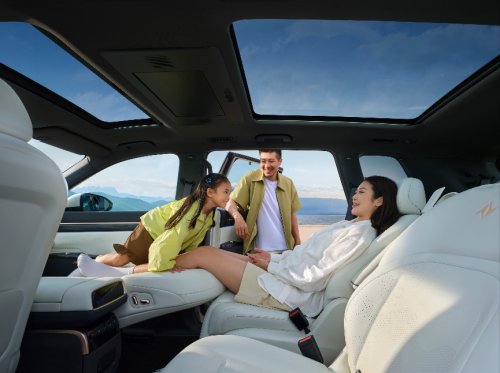 在打造舒适“移动之家”上,eπ008可谓不遗余力。今年推出的如奕版,直接把“冰箱彩电大沙发”这新三样变成标配:5℃制冷/50℃制热的智能冷暖箱,冷饮热食随时伺候;15.6英寸后排娱乐屏支持手机投屏,搭配20扬声器WANOS全景声音响,后排秒变移动影院。5座版魔毯座椅灵活多变,6座版的零重力座椅更是长途解乏利器。值得一提的是,无论酷暑严寒,其前后排空调系统制冷制热效果都非常迅捷且均匀,能迅速为全家营造舒适的车内环境。 加上全景天幕、电动遮阳帘等贴心配置,每个座位都力求“头等舱”待遇。