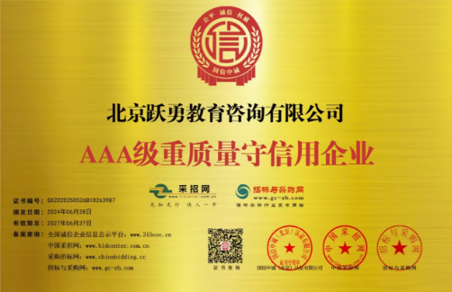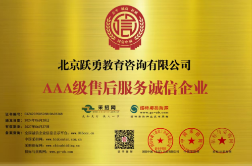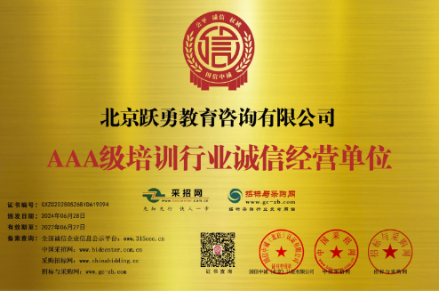 凭借出色的教育服务体系,跃勇教育已获得“AAA级售后服务诚信企业” “AAA级重质量守信用企业”“AAA级培训行业诚信经营单位”等荣誉。这些沉甸甸的荣誉是社会各界及权威机构对跃勇教育诚信办学、规范经营、服务至上的充分肯定,奠定了其在教育行业坚实的品牌公信力.