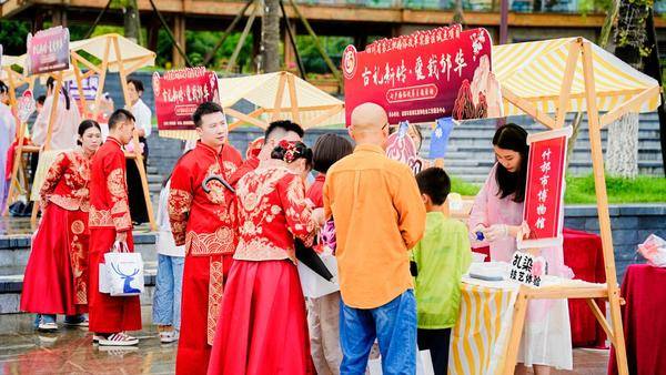 “古风游园会”环节更是人气高涨。“投壶识政策”“嫁妆盲盒”“非遗剪纸”“扎染拓印”等互动项目,让新人和市民在趣味体验中了解婚改政策。单身联谊区则通过“月老牵线”“王婆说媒”等环节,为青年群体创造相识机会,引导树立理性健康的婚恋观。
