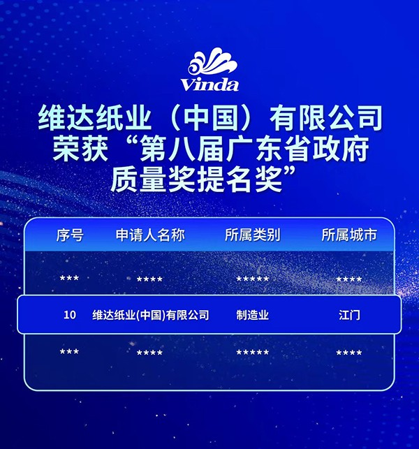 近日,维达纸业(中国)有限公司凭借卓越的质量管理体系、持续精进的技术创新能力及突出的行业贡献,成功斩获“第八届广东省政府质量奖提名奖”。作为省级最高质量荣誉,这不仅是对维达四十载深耕品质、坚守匠心的高度肯定,更彰显了其作为生活用纸行业领军企业的标杆实力与引领价值。