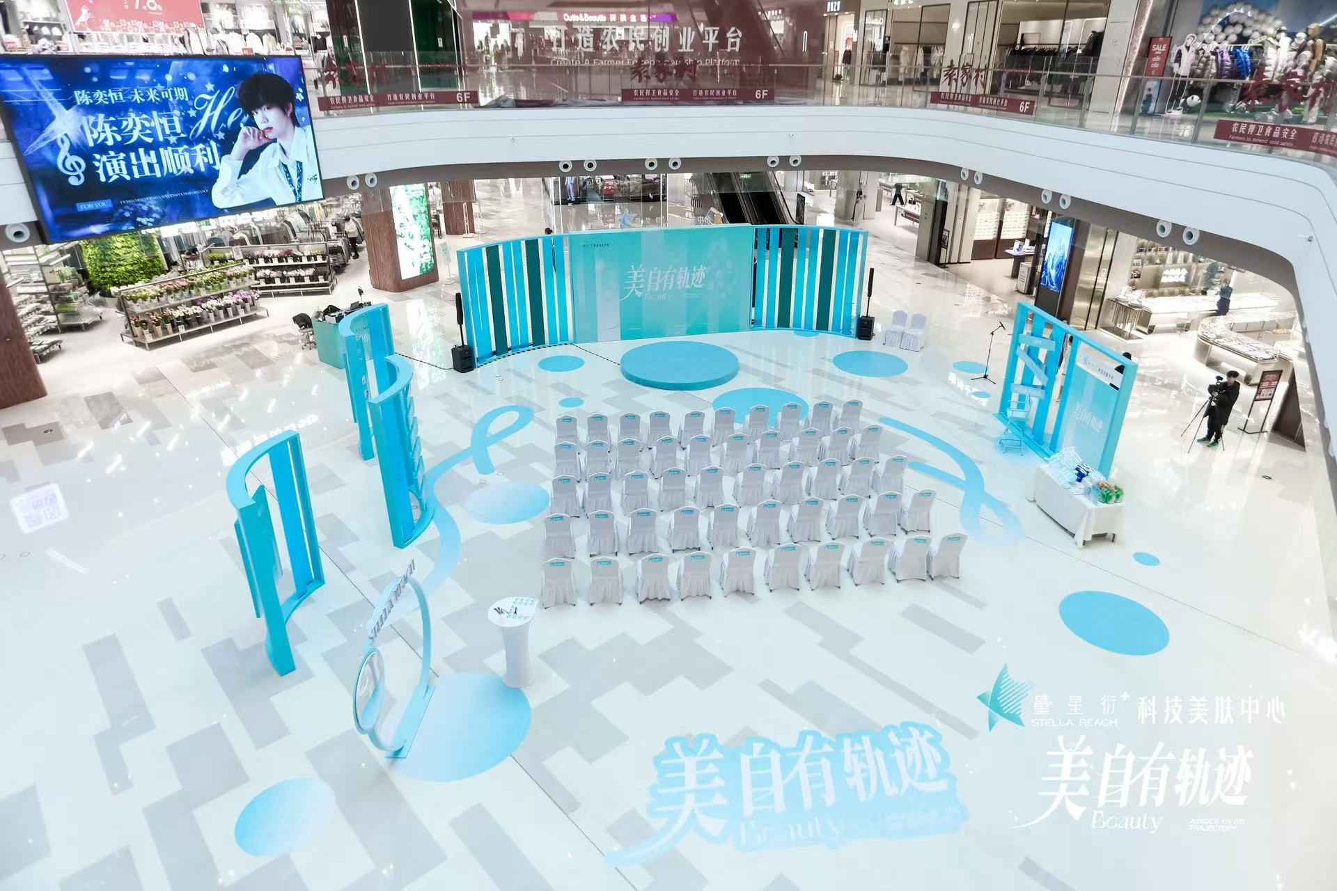 开业活动现场布置以“美自有轨迹”为主题,蓝色的主色调呼应品牌“量星衍”的科技感与神秘感。上午10时许,剪彩仪式正式开始。品牌创始人、特邀美学顾问、行业合作伙伴共同见证了这一重要时刻。现场还设置了科技美肤品牌信息区、肌肤轨迹互动站及美学艺术区,吸引大量市民驻足体验。