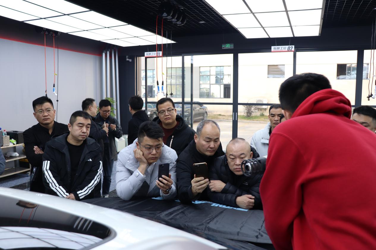 随后,Polarie拜瑞产品施工及产品展示环节如期开展,众多代理商汇聚拜瑞超级贴膜工厂店,拜瑞品牌全国技术总监朱总现场示范汽车窗膜及漆面膜的施工技巧与标准流程,细致讲解施工过程中的关键要点。作为全球前挡膜专研品牌,Polarie 拜瑞的产品凭借专研技术加持,在施工适配性、隔热防护性与持久耐用性上均展现出突出优势。在场代理商们踊跃上手体验,亲身感受产品的优异性能,深刻体会 “深耕前挡科技,拜瑞守护您前方的每一米” 的品牌承诺,为后续 3C 渠道业务的全面开展筑牢了信心根基。