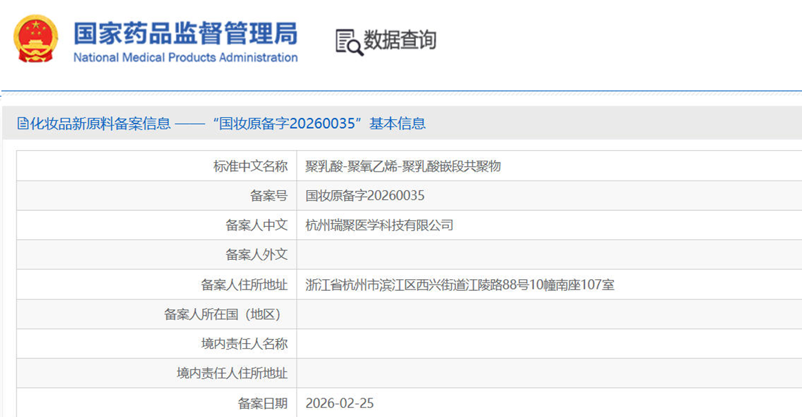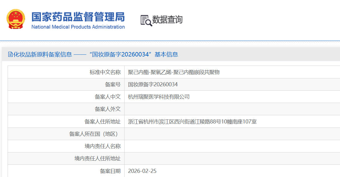 今日,瑞聚医学(ReKey Med)正式宣布,其旗下护肤品原料品牌 Keybeauté的两款再生医学前沿原料: PCL 液体纳球™、PLA 液体纳球™已顺利完成国家药品监督管理局(NMPA)的新原料备案(国妆原备字 20260034、国妆原备字20260035)。PCL液体纳球™、PLA液体纳球™是 Pilotrans™ 新一代液体童颜技术的核心原料。其兼具「胶原促生+精准递送」双重功效,为无创抗衰、肌肤修护等领域提供了合规且科学的技术支撑。