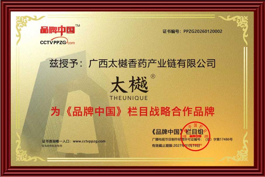 相信通过此次与《品牌中国》栏目的携手,太樾品牌将进一步深化对沉香多元价值的探索,持续推动科技研发与全球资源整合。未来,太樾将以香为媒介,向世界传递东方美学与现代健康智慧,立志成长为世界一流的沉香品牌与健康生活方式的引领者,为推动沉香产业的发展和传承传统文化贡献力量