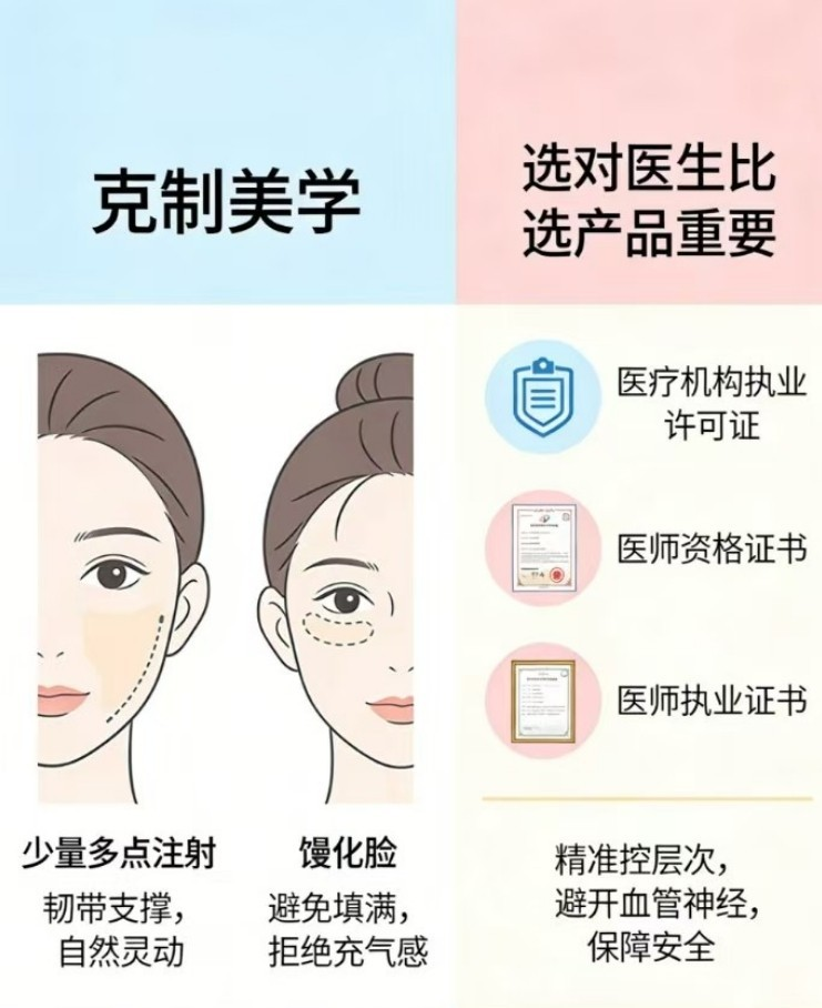 并非“填满”才好看。现在的审美趋势是追求自然、灵动的效果。过量的注射容易导致“馒化脸”(面部臃肿、充气感)。好的医生会遵循“韧带支撑”和“少量多点”的原则,用最少的材料达到最好的效果。