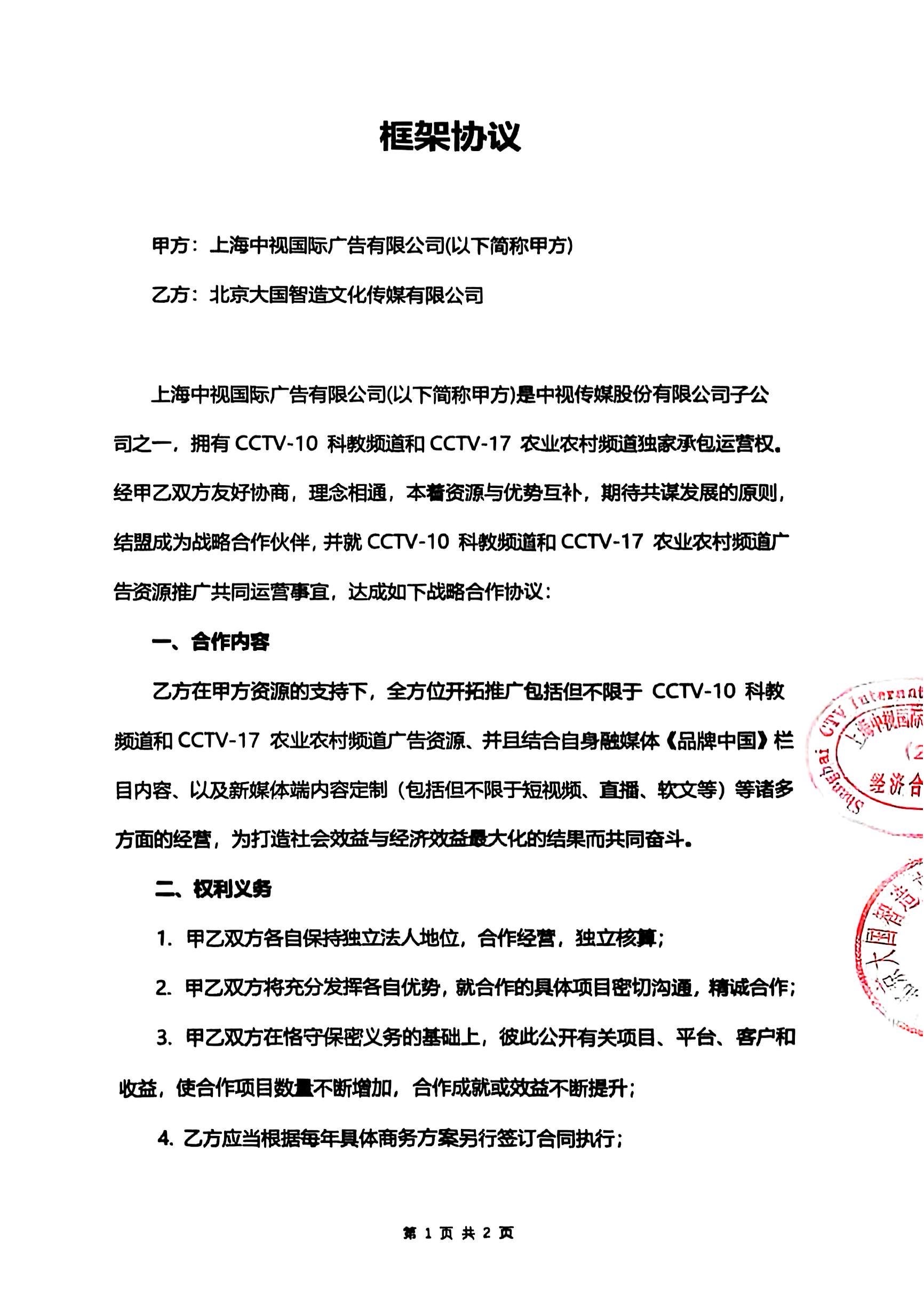 13.2025年8月,《品牌中国》栏目成功获得CCTV10台科教频道和CCTV-17台农业农村频道的独家承包运营权。