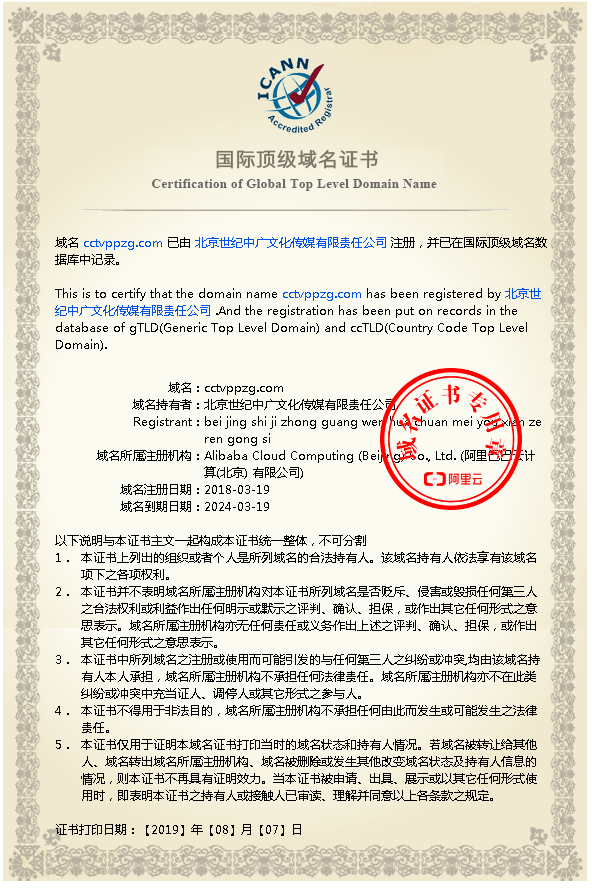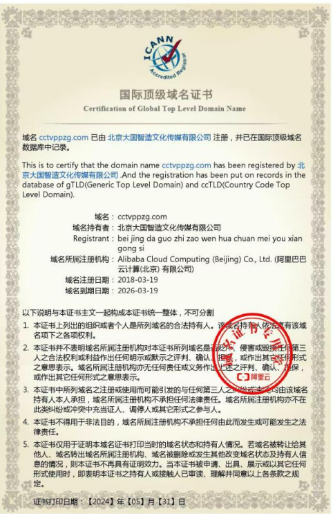 《品牌中国》官网域名证明