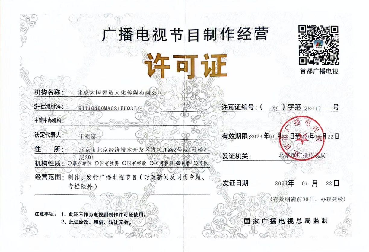 广播电视节目制作资格证(北京大国智造)