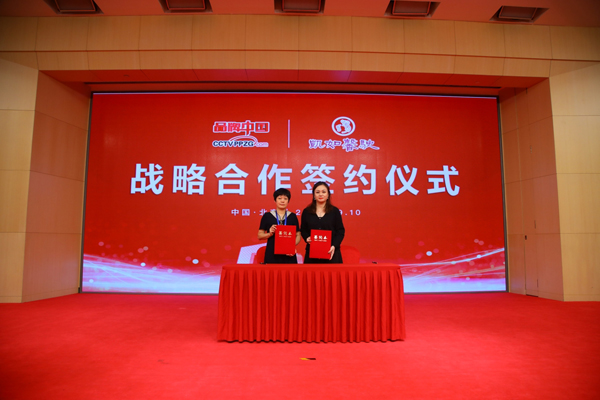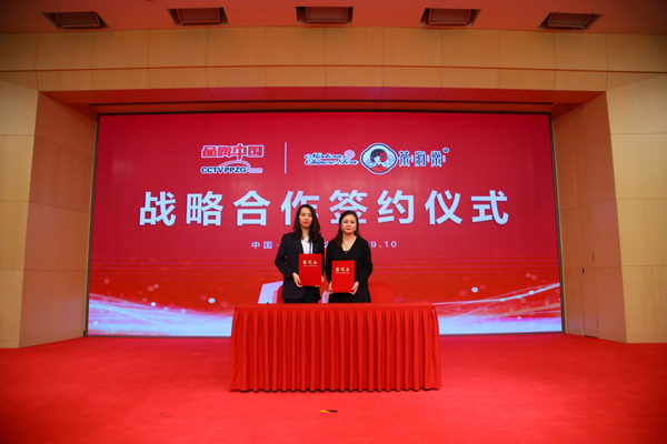 《品牌中国》栏目制片人鲍燕琳女士和南京九州盛世餐饮管理有限公司茶海棠联合创始人谷岳女士进行品牌中国战略合作签约仪式