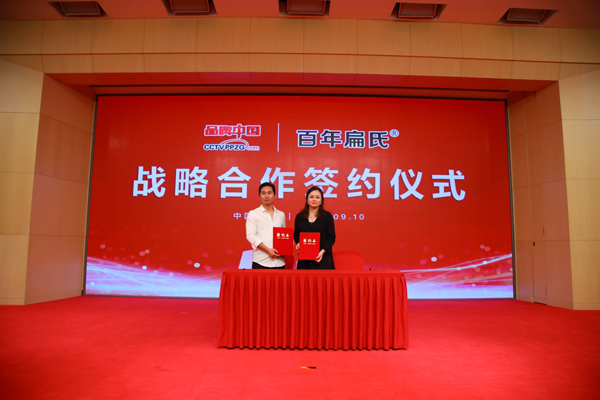 《品牌中国》栏目制片人鲍燕琳女士和北京祖医堂国际咨询有限公司策划总监刘昊天先生进行品牌中国战略合作签约仪式