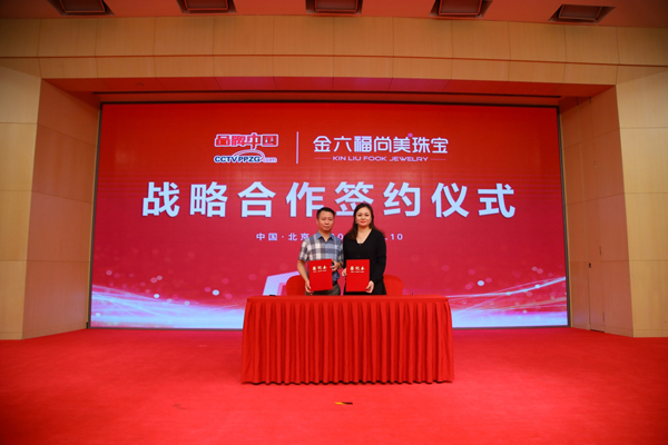 《品牌中国》栏目制片人鲍燕琳女士和金六福尚美珠宝有限公司董事长罗志红先生进行品牌中国战略合作签约仪式