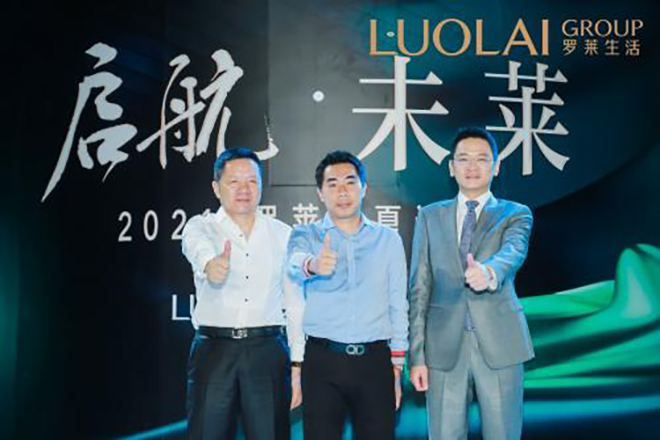 图片从左向右依次为:罗莱生活董事长薛伟成、华为HUAWEI HiLink生态负责人庾征 、 罗莱生活总裁薛嘉琛