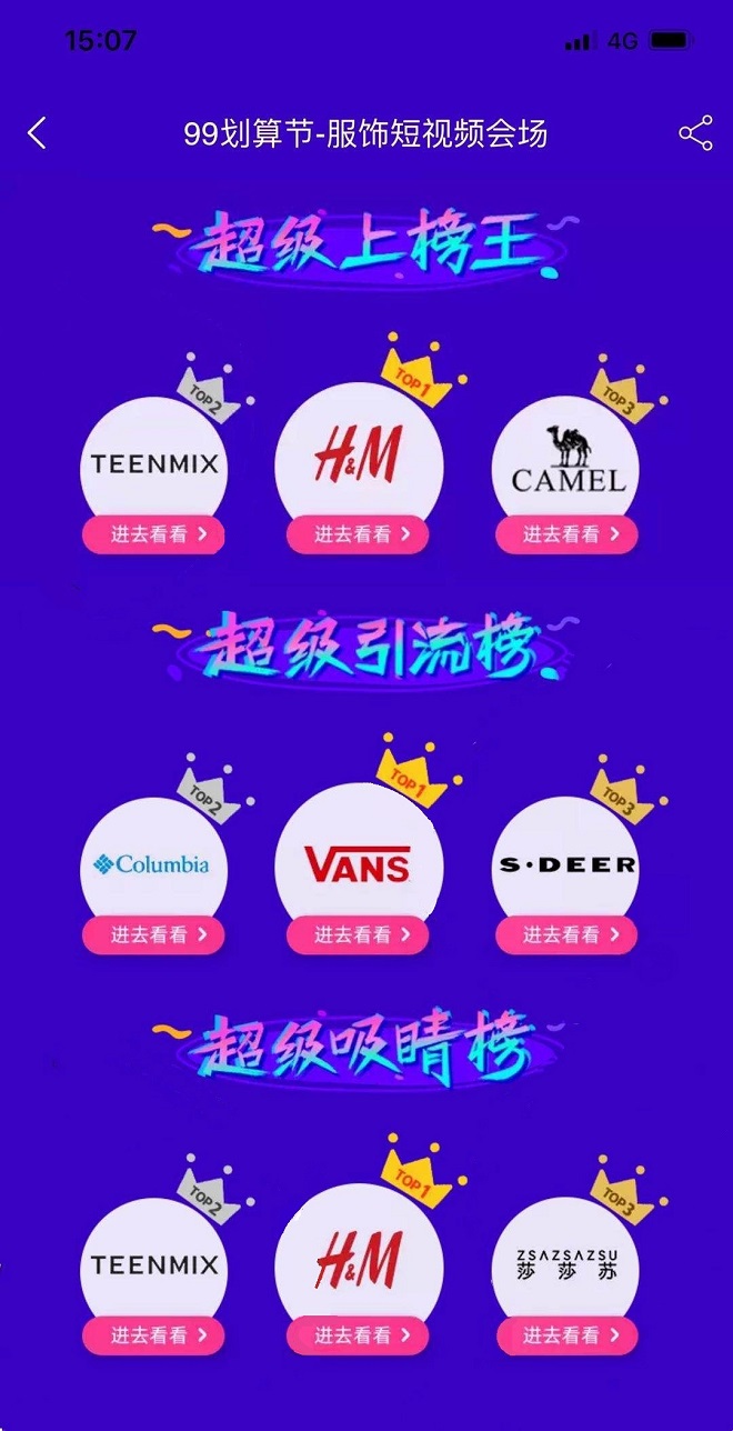 8月,天猫服饰首次重磅推出“99衣燃划算”短视频大赛,集结服饰风尚行业优质品牌及短视频优质机构及创作者,在站内通过短视频会场承接,强势8+N赛道,围绕“商家侧”、“内容侧、“赛道侧”进行大赛打榜,优选短视频内容获取百亿流量扶持,为双11爆发收割预热种草。
