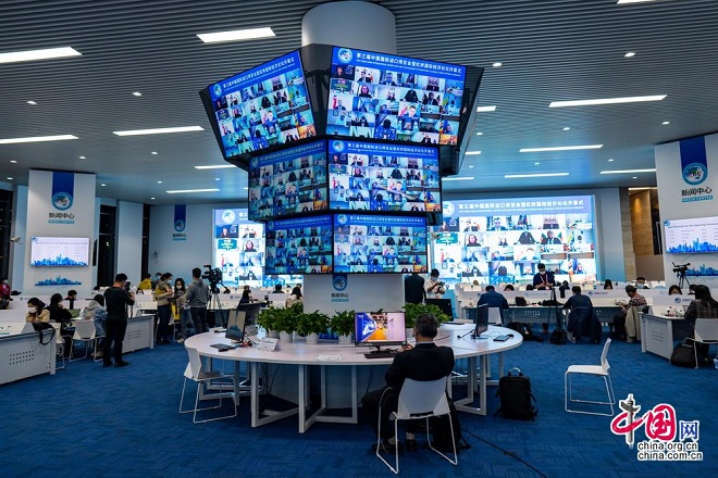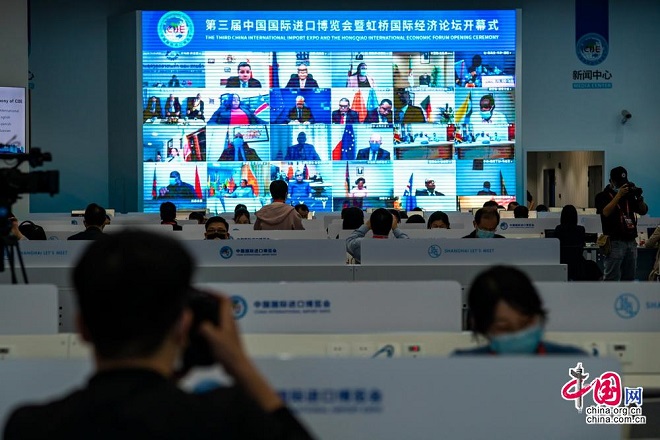 11月4日,第三届中国国际进口博览会开幕式在上海举行,外国元首在开幕式上进行视频致辞。中国网记者 郑亮摄