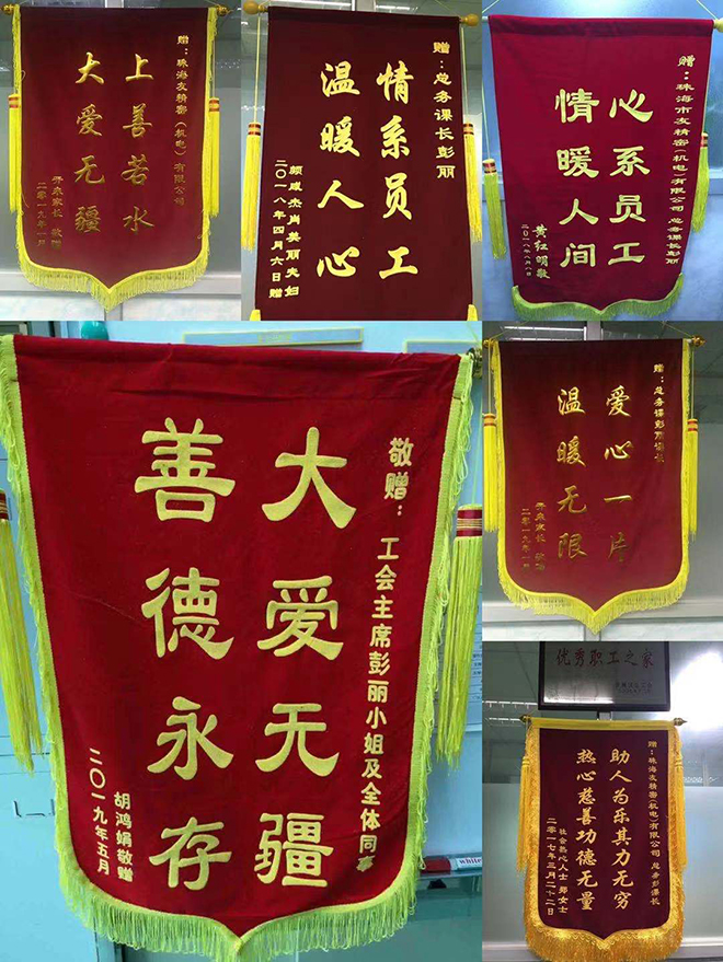 残疾员工为了感激公司对他们作出的贡献,近几年收到的锦旗都已经快放不下办公室了。