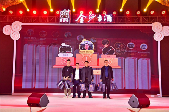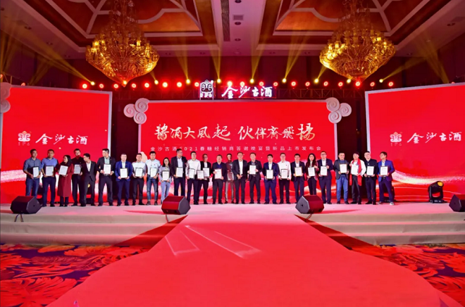 梁邦昌先生、何继红女士、黄平先生、权图先生、李振江先生分别发表了致辞,分享了他们对当前酱酒市场的看法,为金沙古酒的发展提出了珍贵的建议,李瑞杰先生向大家介绍了金沙古酒的发展现状与未来规划,并在现场进行了期权奖励,展示了金沙古酒做大做强的决心与实力。