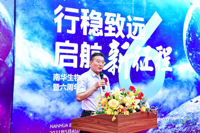 南华生物总经理游昌乔在致辞中表示:我们特别选择“五四青年节”举办公司新址搬迁暨公司六周年庆典,因为我们不仅在股票代码(000504)的数字应和五四青年节,更是在业务及文化内涵上与“五四青年节”呼应。