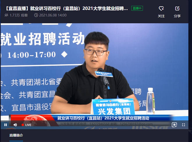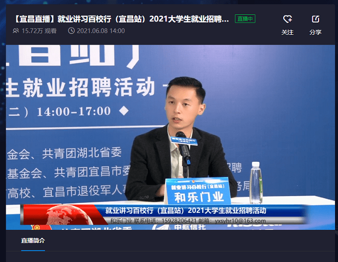 共青团宜昌市委副书记鲁武在致辞中表示,为贯彻落实《中长期青年发展规划》,全力做好稳就业、保民生,推动高校毕业生就业创业工作,宜昌团市委切实当好党联系青年的桥梁纽带,以“赋能”提升共青团的亲和服务力,广泛凝聚团员青年推动“十四五”开好局起好步,持续关注青年就业新需求,以提供就业岗位、促进青年就业创业为目标,通过举办各类招聘会、推介会、青年委员走读新宜昌、青年企业家菁英论道等有效就业创业服务载体,努力为企业和青年搭建沟通服务的平台、提供就业机会,进一步提高青年就业创业能力,为推动宜昌高质量发展汇聚青春力量。