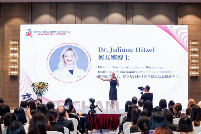 友娜博士毕业于法兰克福大学生物化学系,专注于线粒体医学研究,曾在国际顶级期刊《Nature》发表论文,论坛现场分享了世界范围内最新的抗衰老研究成果,将晦涩难懂的抗衰知识讲得形象生动,受到现场嘉宾的一致好评。