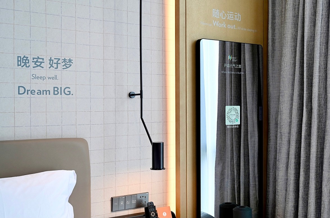 逸衡酒店是洲际酒店集团旗下的健康生活方式新品牌,让宾客在旅行时保持健康的生活方式。通过提供多元化的健康平衡的选择,让宾客在旅程中可以随心运动,健康饮食,舒心睡眠并成就高效。FITURE魔镜上市以来,凭借独创的“交互式内容”模式,以极致的智能健身体验深受用户的肯定。15间配备有FITURE魔镜的豪华活力房可以让旅行者们在房间内即可享受专业、丰富、有趣的健身课程,从瑜伽、Barre到HIIT、有氧舞,以及最新推出的Pure合作课程和金芭蕾少儿舞蹈课程,满足各式人群的健身需求。旅行者们可以不受时间的限制,足不出户即可放松疲惫的身心,在镜中看到自己的动作是否规范,保证私密性的同时畅享运动乐趣。