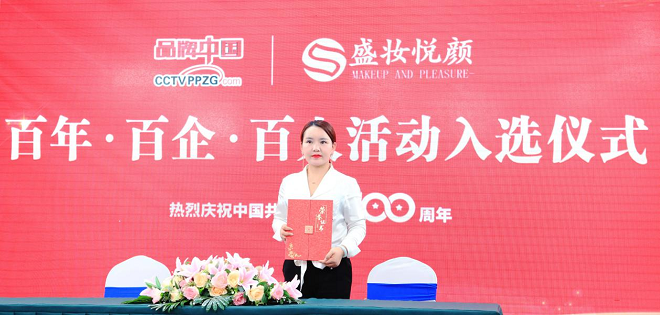 为献礼中国共产党成立100周年,《品牌中国》栏目举办“百年·百企·百人——传承红色火炬点亮中国品牌”活动。盛妆悦颜成功入选 “纪念中国共产党成立100周年百强品牌”,受邀在京参加专访。