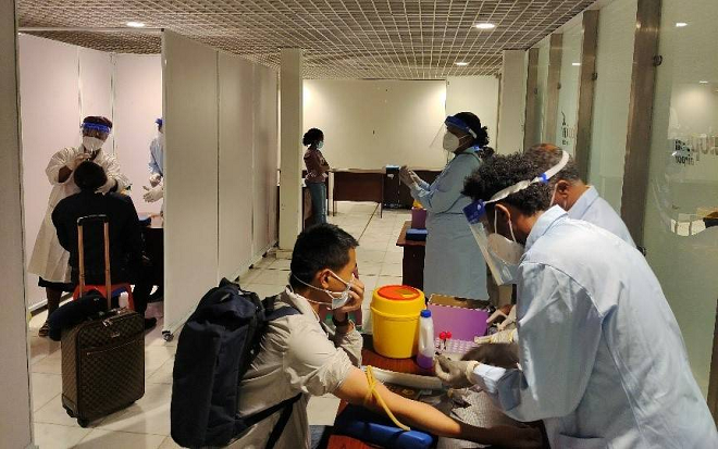 在疫情大背景下,中国与埃塞俄比亚秉承构建人类命运共同体的理念,积极协作共同抗疫。博莱国际机场赴华航班提前检测防控成为减少新冠阳性病例输入的有效措施。
