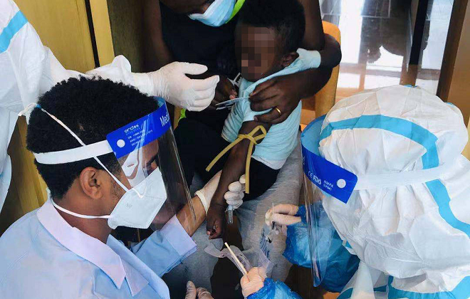 实验室采样组负责人李根告诉我们, “这个小小的改变让我国同胞避免了针管采血的痛苦,感受到了与国内一样的服务,同时我们也对埃塞本地同事进行了培训,确保所有本地员工可以熟练应用这一个小技术。”
