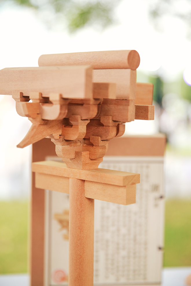 作为南宋古都,宋代的文化基因藏在杭州城市里,成就杭州文化自信的底色。“宋韵雅生活”板块,展现了时隔千年宋韵生活美学的当代传承。来自全国各地的匠人们,把对宋韵美学的理解变成适合现代生活,可观赏、可体验、可购买的生活小品。不用一枚钉子,一滴胶水,中国传统榫卯工艺只靠物理原理和工匠才华就能化平凡为神奇。晚峰书屋创始人、中国古建筑榫卯积木开发者刘文辉现场带来一座巨型“爆炸式”装置,解构呈现榫卯建筑。感兴趣的话,你也可以买一套宋式斗拱积木回家,让孩子感受中国古代建筑工艺的魅力。