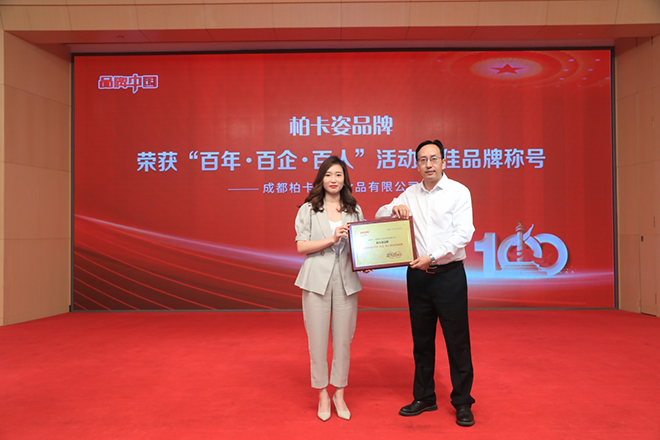 2021年7月20日,由《品牌中国》、CCTV《民族品牌·荟萃闪耀》专案主办的“奋斗百年路·启航新征程——传承红色火炬·点亮中国品牌”活动在北京市中央广播电视总台梅地亚中心举行。国家发改委城市中心、中共中央党史和文献研究院第三研究部、中央广播电视总台新闻中心等单位领导出席了本次活动。成都柏卡姿化妆品有限公司获选“百佳品牌”荣誉称号。