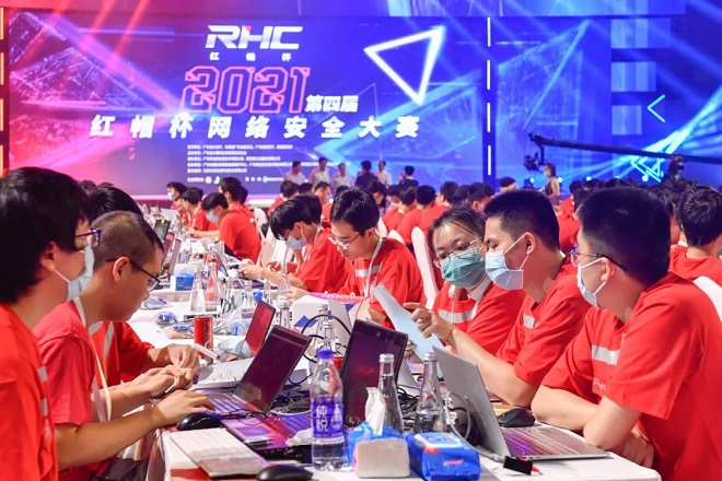 本届“红帽杯”大赛自报名之日起,便受到了媒体、各大院校、用人单位的广泛关注,共吸引来自全国党政机关、企事业单位、全国各地高等院校和网络安全企业的2844支战队、近6700人次报名参加,创历史新高。决赛当天,100支进入决赛的队伍(40支高校队伍、22支政府国企事业单位队伍和38支社会网安人才队伍)采取AWD(Attack With Defense,攻防兼备)网络安全对抗赛模式,在模拟实战的现场对抗环境中,在网络空间同时发起互相攻击和防守,通过挖掘对方网络服务漏洞并发起攻击得分,通过修补自身服务漏洞进行防御来避免丢分,以最终得分作为评判胜负的依据。经过6个小时不间断紧张激烈的较量,最终由ehbud队、第五实验室1队、牧星人队分别获得院校组、政府国企事业单位组、社会人才组冠军。
