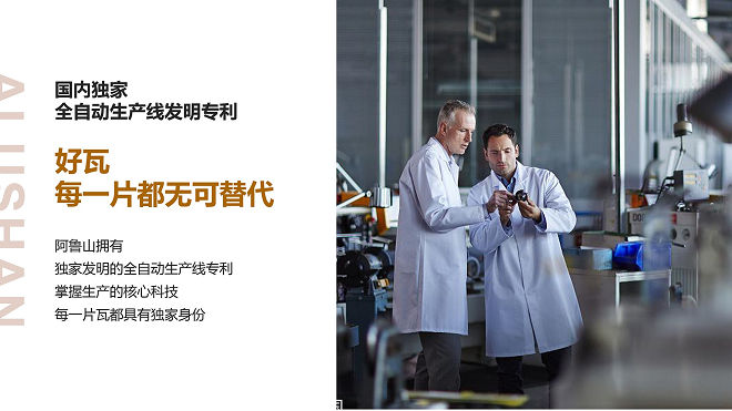 彩石瓦是一种科技催生的新型屋面材料,主要以防腐性优异的镀铝锌基材和天然彩砂两部分组成,因其美观、轻巧、耐用、环保,近年来已经成为国际屋面材料的主流产品,国内高档建筑均有使用。然而,由于整个屋面材料行业没有强势企业引领,价格竞争恶劣,导致市场良莠不齐,无良企业唯利是图,为谋取更多利润而选用劣势原材,损害用户和行业整体的权益。面对如此状况,传统的以品质对抗低价劣品的方式效果甚微,必须以革新性的技术迭代为行业打造全新壁垒,而要说到一直以创新标准与技术研发推动彩石屋面瓦行业进步的品牌,不得不提起以“彩石瓦大师”为身份定义的阿鲁山。