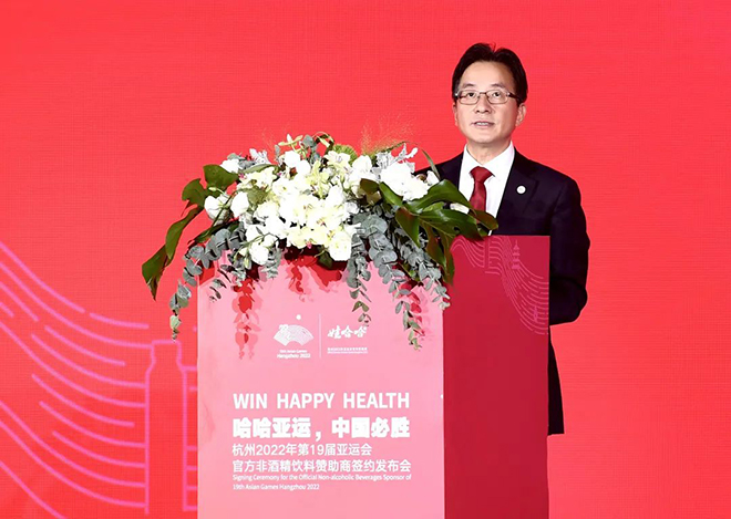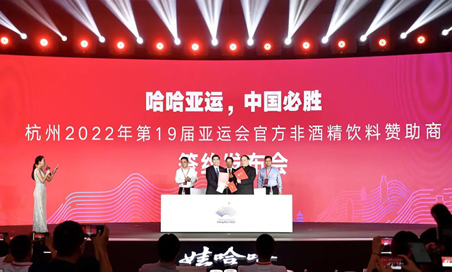 8月13日晚,杭州2022年第19届亚运会官方非酒精饮料赞助商签约发布会在杭州召开。娃哈哈正式牵手杭州2022年亚运会,全力为亚运服务,保障亚运全场景饮用水需求。同时,娃哈哈围绕着“Win Happy Health赢在健康快乐”理念,推出了三款亚运定制新品,宣布将启动“哈哈加油站”项目。