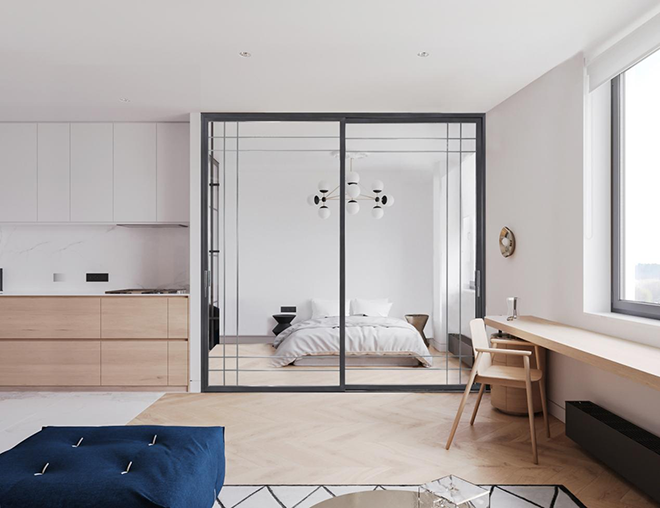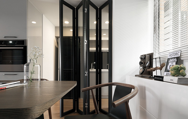 对于小户型的小伙伴折叠门是不错的选择,折叠门的奇妙之处在于可打开折叠门即是通透的空间,合上折叠门又是一处独立隔间。