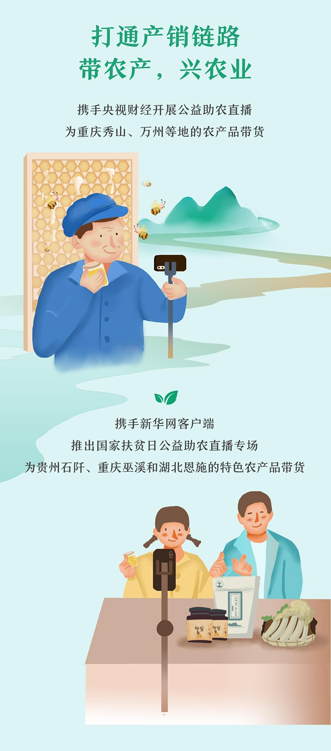 2019年以来,度小满先后携手央视财经、新华网客户端展开公益助农直播。借助一个小小的直播间,贵州石阡的红茶、豆瓣酱、竹荪,重庆巫溪的牛肉干、木耳……数不清的乡村好产品走进了千家万户,特色农产品反哺特色农业,乡村好货带动乡亲致富。