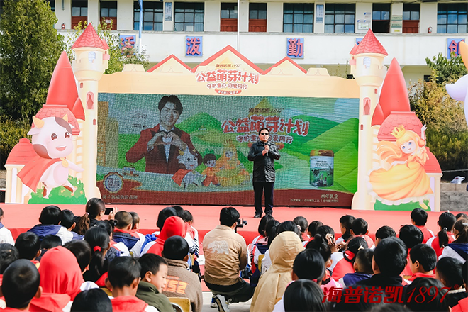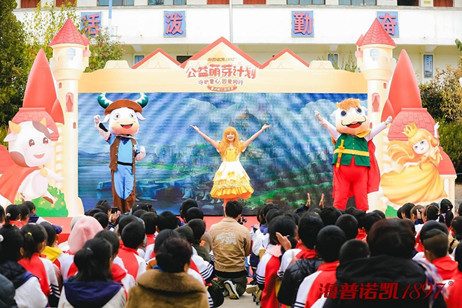 2021年11月29日,荷兰高端奶粉品牌海普诺凯1897携手新浪等童心守护者们,带着原创自制童话剧《牛牛特工队3》,以及音乐教室捐赠走进云南宁蒗,为生活在大山里的孩子们带来了别开生面的童话剧演出,用艺术和公益的力量守护每一颗纯真童心,用爱成就每一个“小小艺术家”。