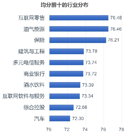 排名较高的企业,主要分布在我国经济体系内发展比较稳定的行业,如互联网、金融和消费等。新兴行业中的龙头公司虽然排名也较高,但要稍低于其市值的排名。这是因为,新兴企业在早期往往由于市场红利获得高速发展,掩盖了其组织力的不足。因此这些新兴公司能否持续地发展壮大还有待考验。