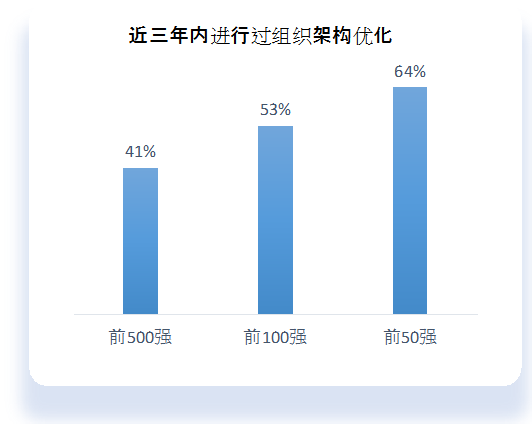 面对VUCA时代高度不确定的外部环境,企业需要更加敏捷的组织架构以适应市场的变革。企业对组织架构进行更频繁的调整,排名越靠前的公司,越重视组织架构调整的重要性。传统行业的公司开始积极拥抱数字化和新兴科技,以优化组织效率。
