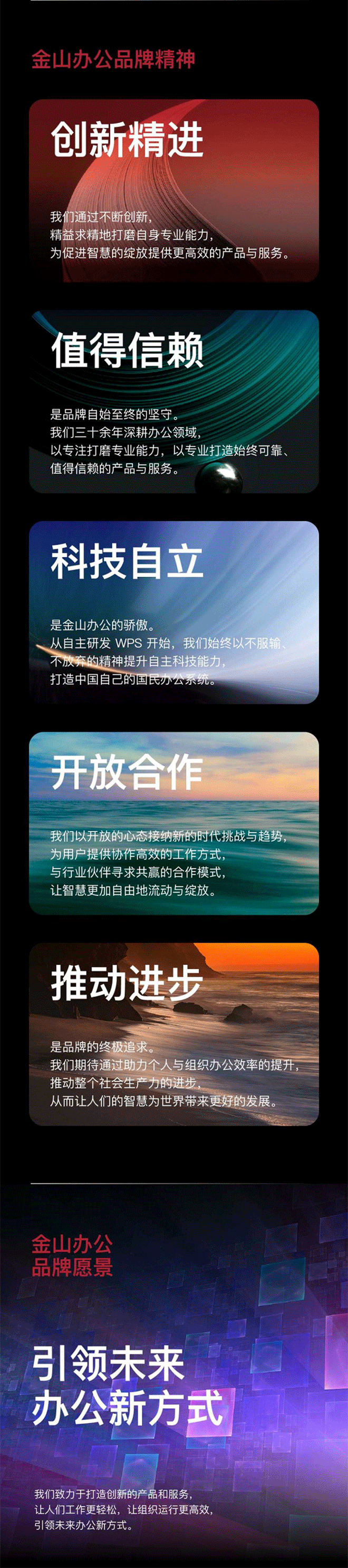 办公赛道随着互联网大厂们的加入,竞争变得异常激烈。企业与企业之间的竞争,早已不仅是产品实力的竞争,更是品牌实力的竞争。作为目前在中国办公领域最具竞争力的品牌,其本次发布的品牌五大特质,或许是其这33年来一直保持“长青”态势的最佳注释:创新精进、值得信赖、科技自立、开放合作、推动进步。