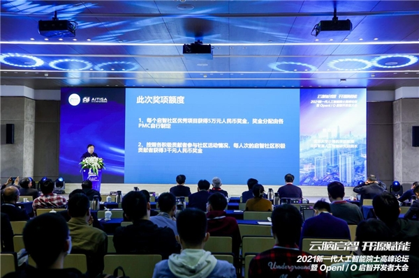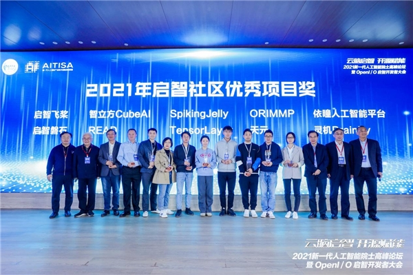 12月19日,在2021新一代人工智能院士高峰论坛暨启智开发者大会上,揭晓了2021年度十个优秀开源项目的获奖名单,徐宗本院士和郑纬民院士上台为“启智社区优秀项目”获奖代表颁奖。
