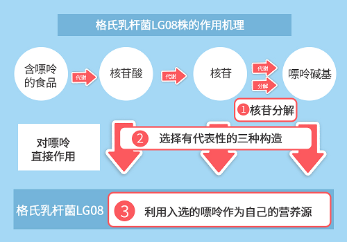 三、利用纳入的嘌呤进行增值等作用,这些嘌呤会被格氏乳杆菌LG08当作肥料,让益生菌更加“强壮”。