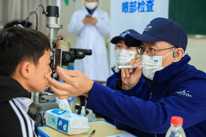 为助力乡村发展、解决西畴县中小学生的近视问题,本次“睛彩童年 点亮西畴”项目总计为当地1155名中小学生进行了视力筛查、眼底检查和验光,并为其中987名近视学生提供免费配镜服务。此外,依视路视力基金会还带来了搭载高精度测量技术的依视路光学生物测量仪,精准测量孩子们的眼轴数据,帮助医生了解当地青少年的近视进展情况,并提供科学准确的视力矫正建议。